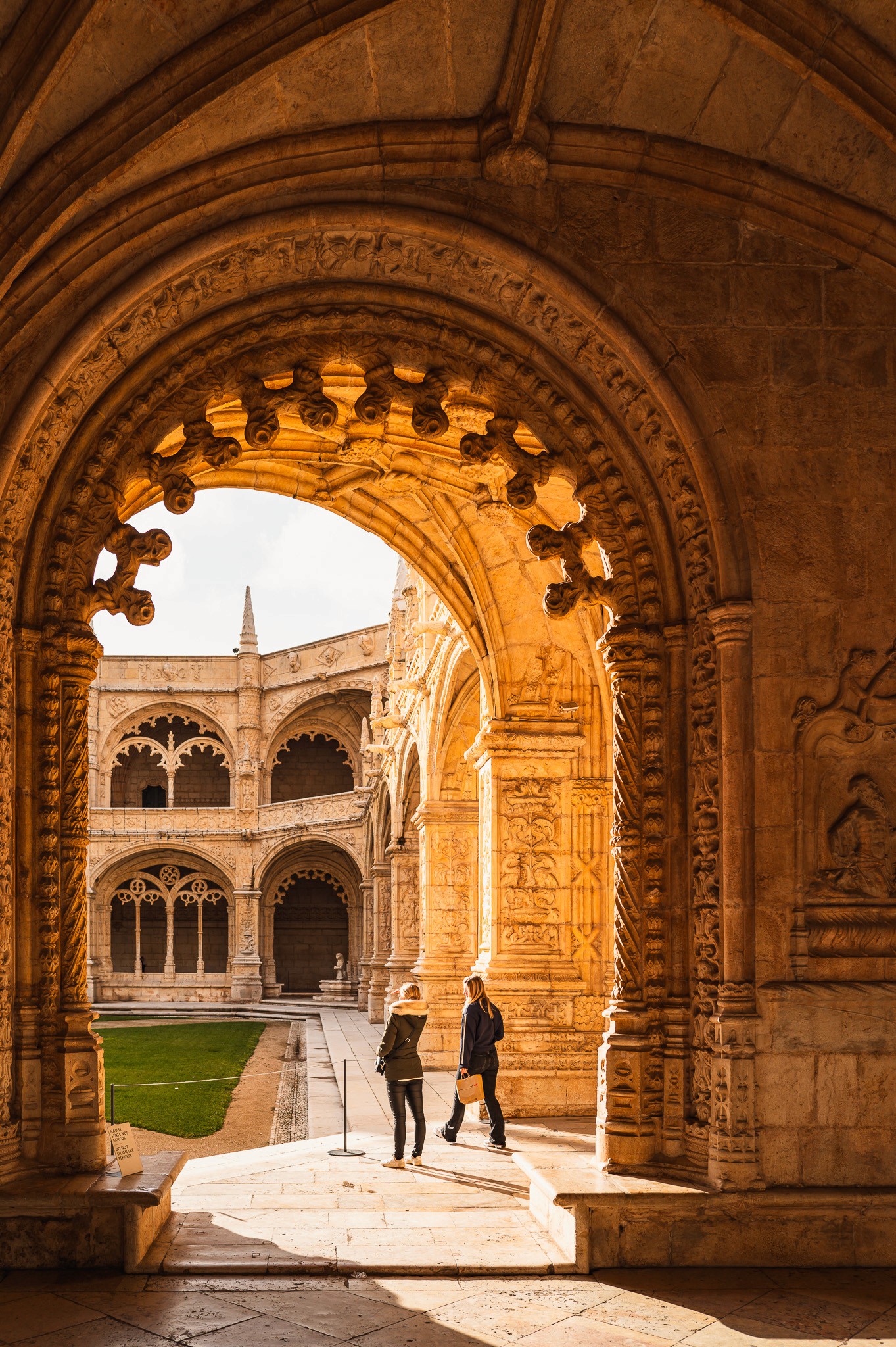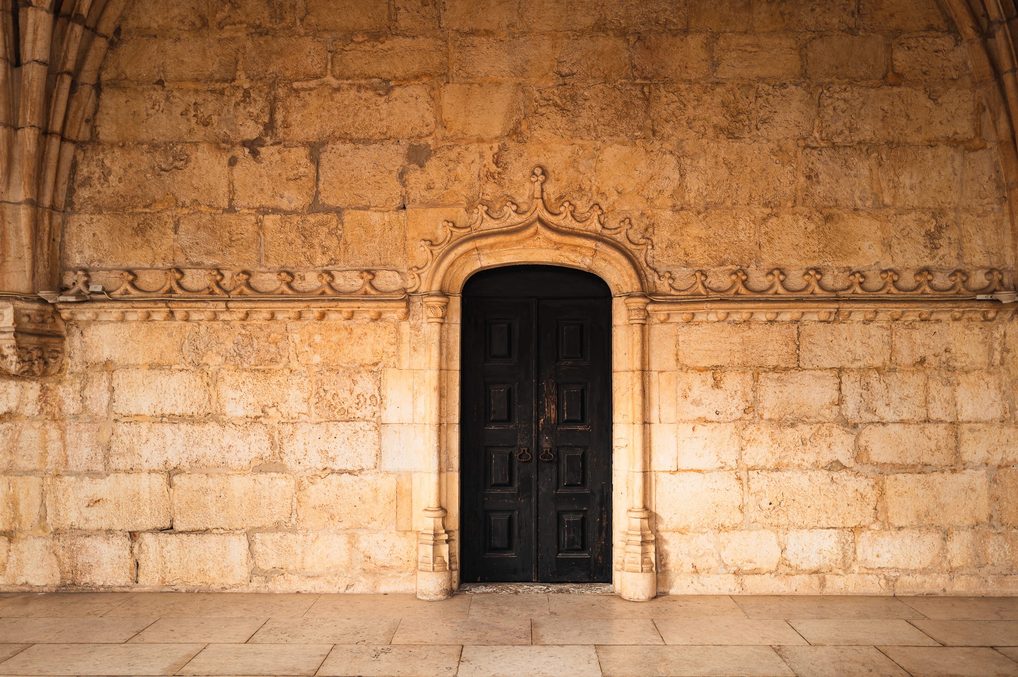The cloister is where you slow down properly. Two storeys of arcaded galleries surround a garden court, each arch different from the last if you look closely enough — carved with coral, with sea creatures, with the twisted rope motif that appears throughout Manueline architecture, a reminder that this was a country built on open water. Everything here is the record of a civilisation that had just returned from the edge of the known world and needed somewhere to put that feeling.